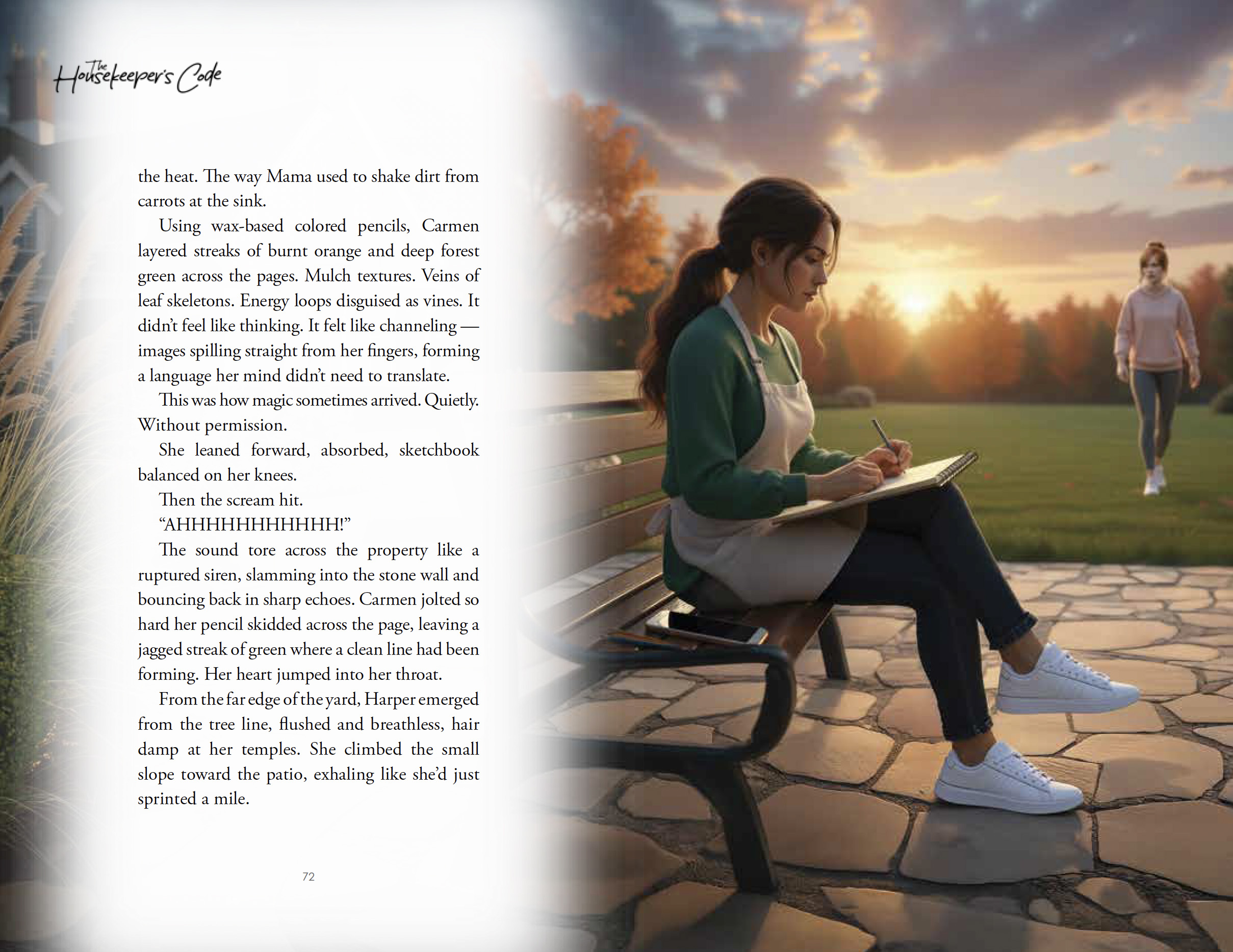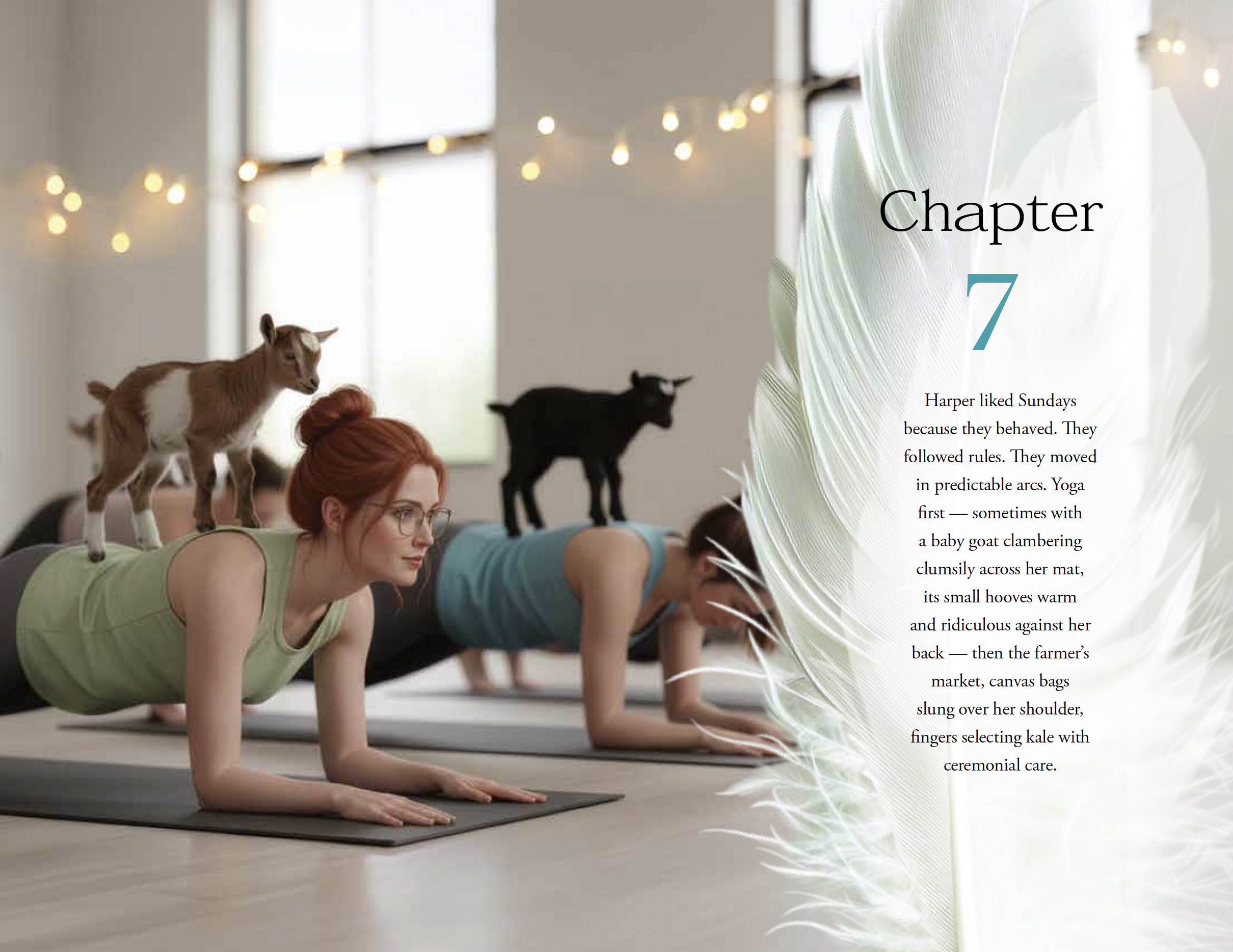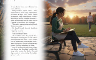 For this project, we crafted a visually cohesive interior system that seamlessly integrates handcrafted illustrations with a refined, narrative-driven layout. Our approach centered on creating immersive, full-bleed scene imagery paired with a soft, organic overlay device that houses chapter titles and opening text. This layered treatment allowed us to maintain strong visual storytelling while ensuring clarity and readability. We developed a consistent typographic hierarchy—balancing elegant serif body copy with modern accent numerals and chapter markers—to give the book a polished, contemporary feel while supporting long-form reading.
