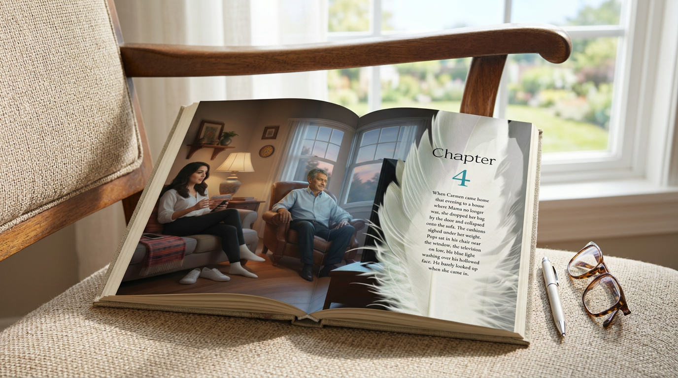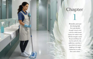 Beyond structure, we focused on building a distinctive visual language that could carry emotional continuity across chapters. Each illustration was art-directed to align with tone shifts in the story, then carefully composed within the layout to guide the reader’s eye and pacing. Subtle transitions, branded chapter treatments, and recurring graphic motifs create a sense of rhythm and cohesion from spread to spread. The result is a thoughtfully designed interior that elevates the manuscript into a fully realized visual experience—where design, illustration, and storytelling work as one.